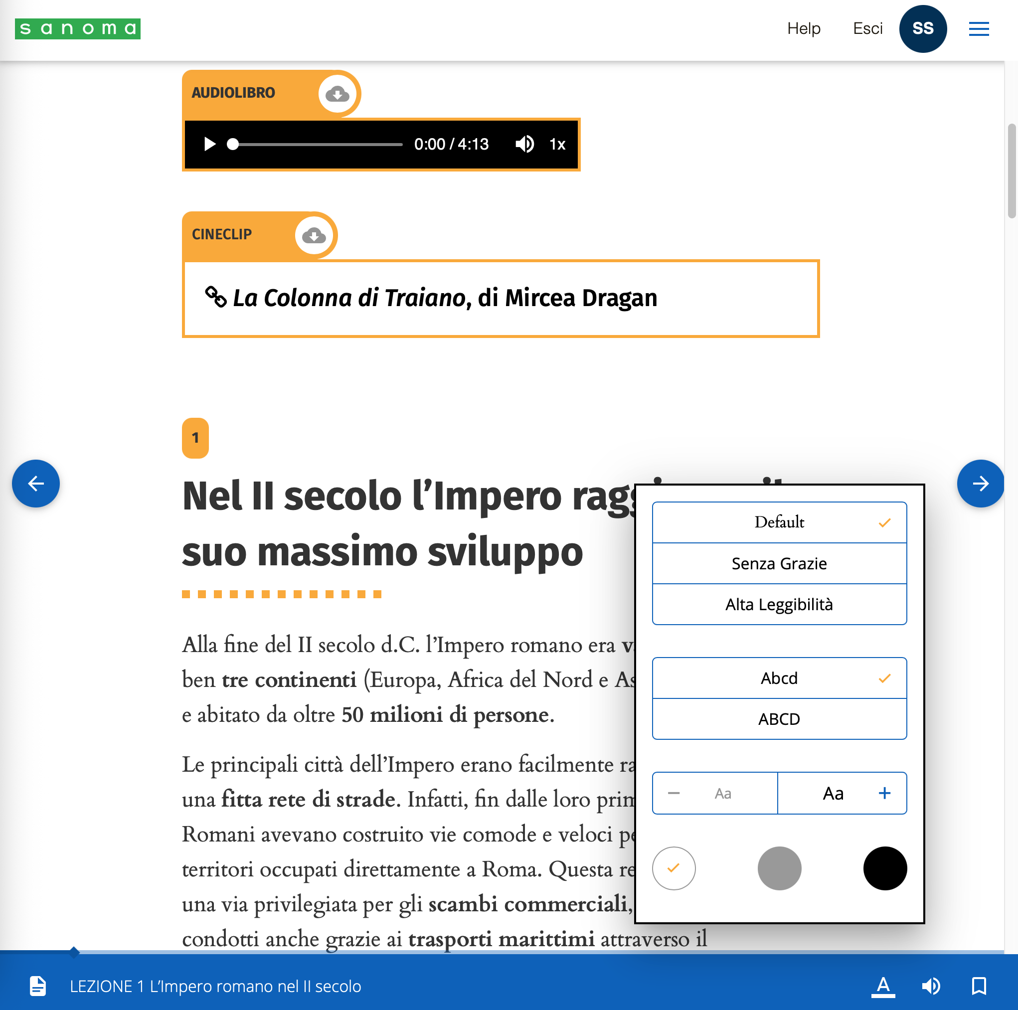 Tramite le opzioni relative all'aspetto del testo è possibile aumentarne la leggibilità selezionando: