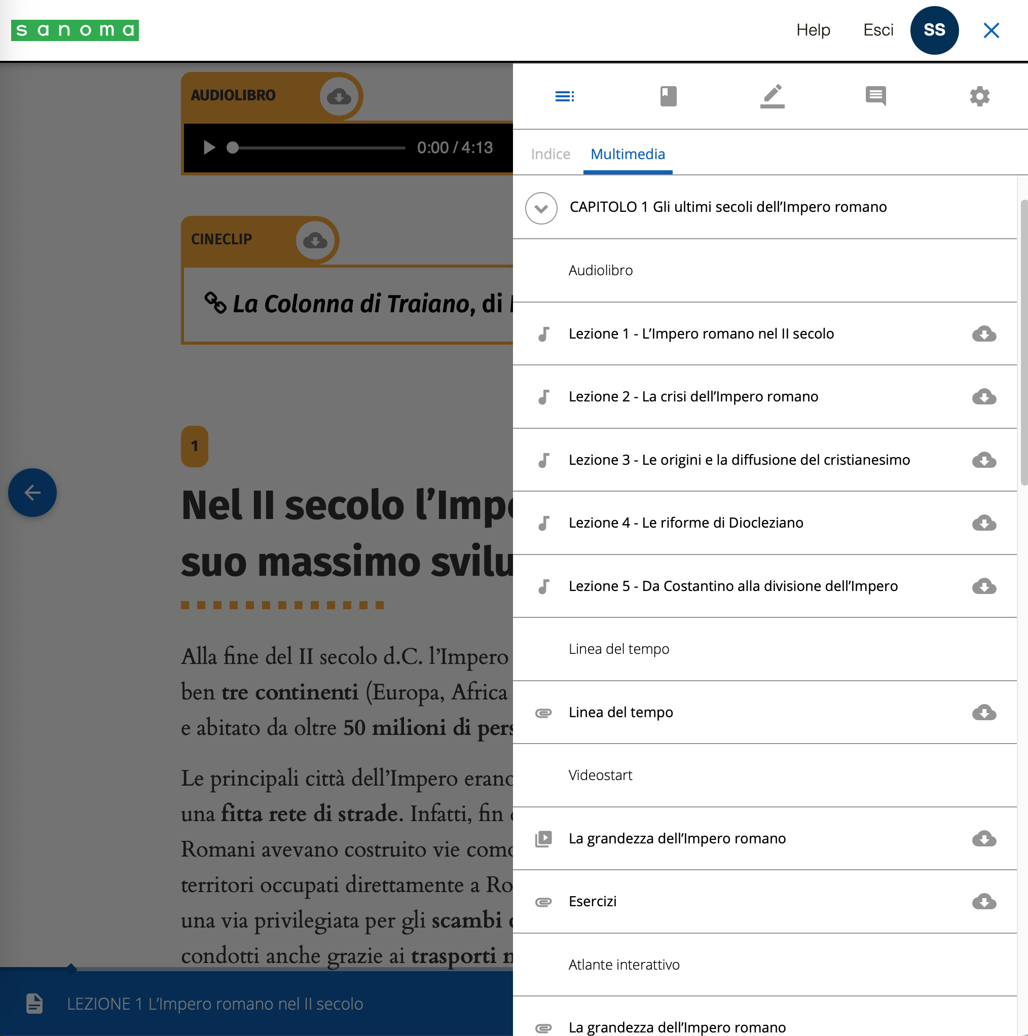 Tutte le risorse multimediali collegate al volume sono disponibili dalla pagina o dal menu Multimedia.